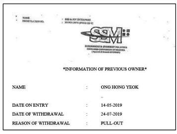 [55] It is not disputed that the 1st respondent along with a few others had set up Bee & Joy which was registered on 14 May 2019. Refer to the company search in encl 6/146. It was submitted that even if the 1st respondent wanted reinstatement, this was not possible as he had to manage the operation of Bee & Joy. However, a perusal of the same company search at encl 6/149 under the heading "Information of previous owner" would reveal that the 1st respondent had withdrawn from Bee & Joy as at 24 July 2019. That information showed as follows: